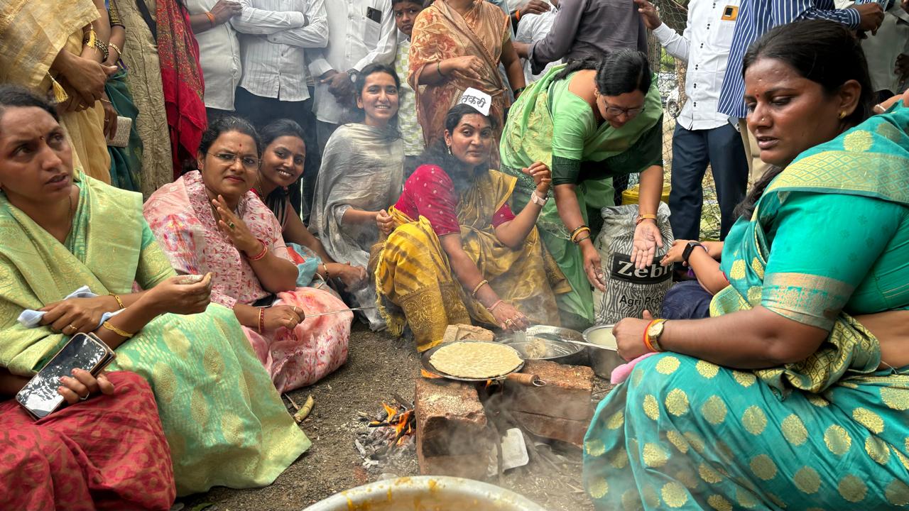 जिल्हाधिकाऱ्याच्या नावाने भाजल्या भाकरी, हाटल पिठलं, कलेक्टर ऑफिसच्या समोर महिलांनी मांडल्या चुली.